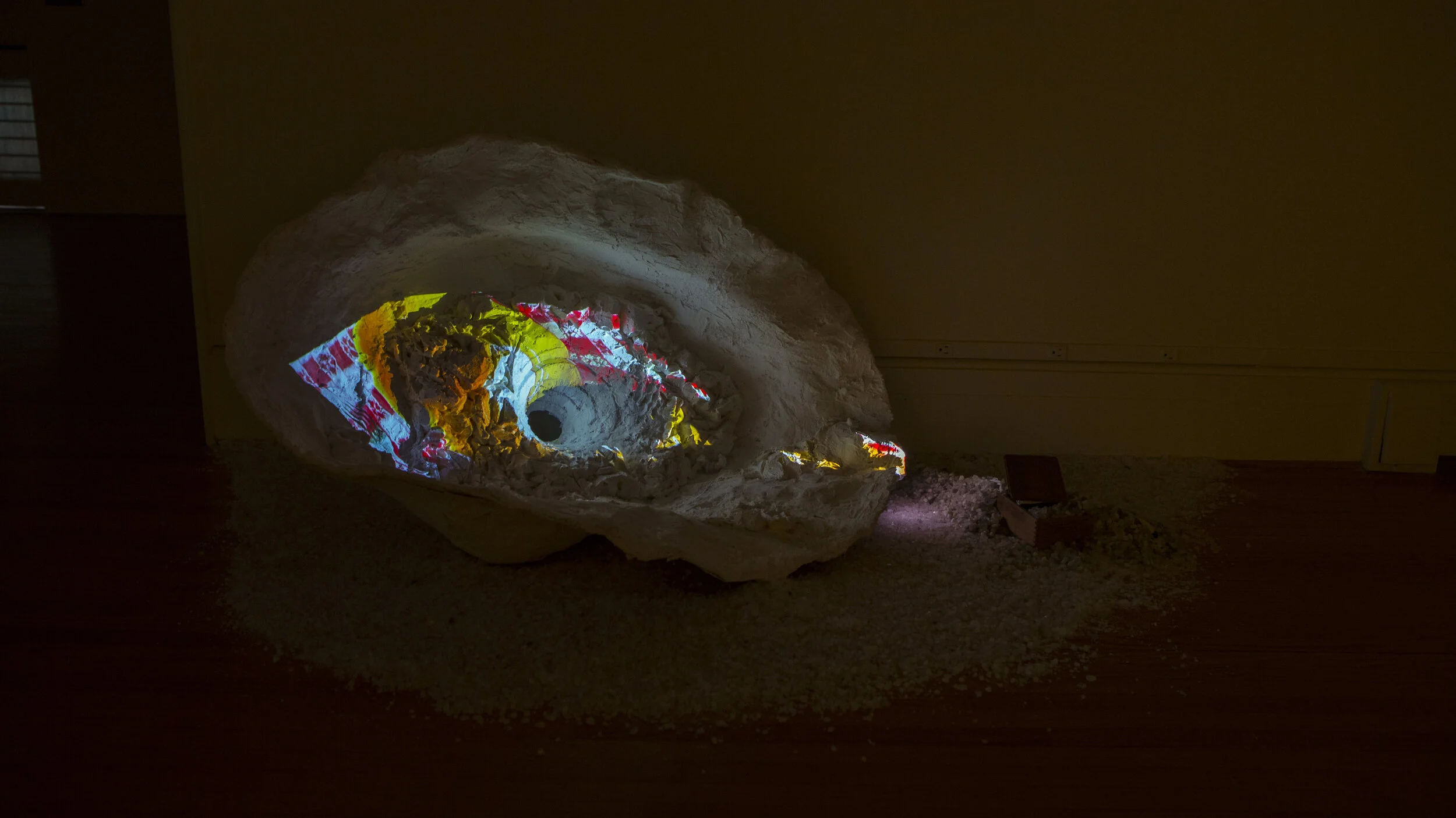 ¢urrēns is a body of work which juxtaposes today’s shifting economic climate with the origins of value systems and its connection with the environment in the form of video installation and sculpture. The name of the series, currēns, is the root word for currency, meaning in Latin “to run through”, the sense of flow or current. Sculptures house animations, whether as vessels holding monitors or as landscapes to be projection mapped upon. These research-based and satirical animations show objects, such as salt, gold, tulips, beads, and shells, moving cyclically through the landscape in a wonky and absurdist fashion. As today’s currency continues to move further from the tangible into intangible digital abstraction, this work questions what society truly values and how to measure its importance.