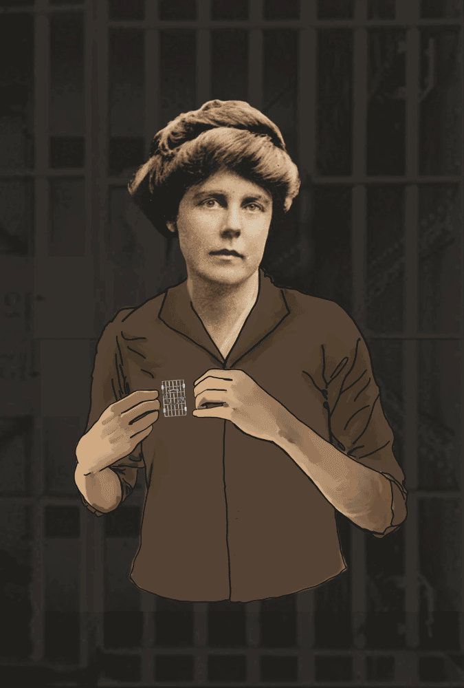 Lucy Burns was a suffragist who was imprisoned more than six times while protesting for women’s voting rights. She was in prison for months at a time, where she was tortured and instigated hunger strikes. She holds the “Jailed for Freedom” pin, awarded by the National Women’s Party and given to many women imprisoned for peaceful protesting. More than 90 women were sent to prison for protesting on the charge of “obstructing traffic.” After being released from prison in 1919, Burns helped lead a national train tour with 26 other women who had also been tortured and force-fed in prison for protesting. The 1919 train tour traveled throughout the US to share their stories. The tour helped build public opinion for passing of the 19th Amendment for women’s right to vote.